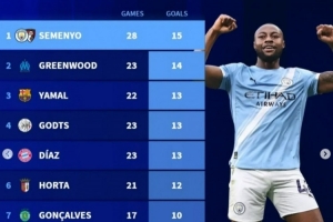 體育資訊3月6日訊 德轉(zhuǎn)盤點了本賽季歐洲前十聯(lián)賽邊鋒球員進球榜,其中塞梅尼奧居首,具體如下: